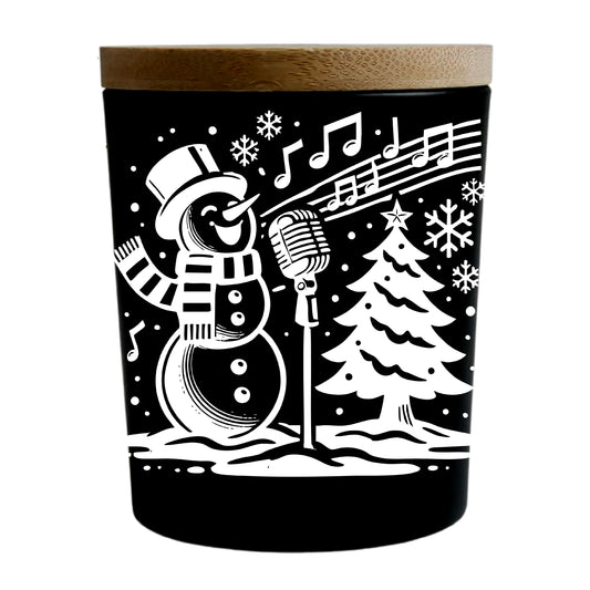 Caroling Snowman Singing | Christmas Engraved Soy Candle | Mahogany Teakwood-Type Scent + Crackling Wood Wick