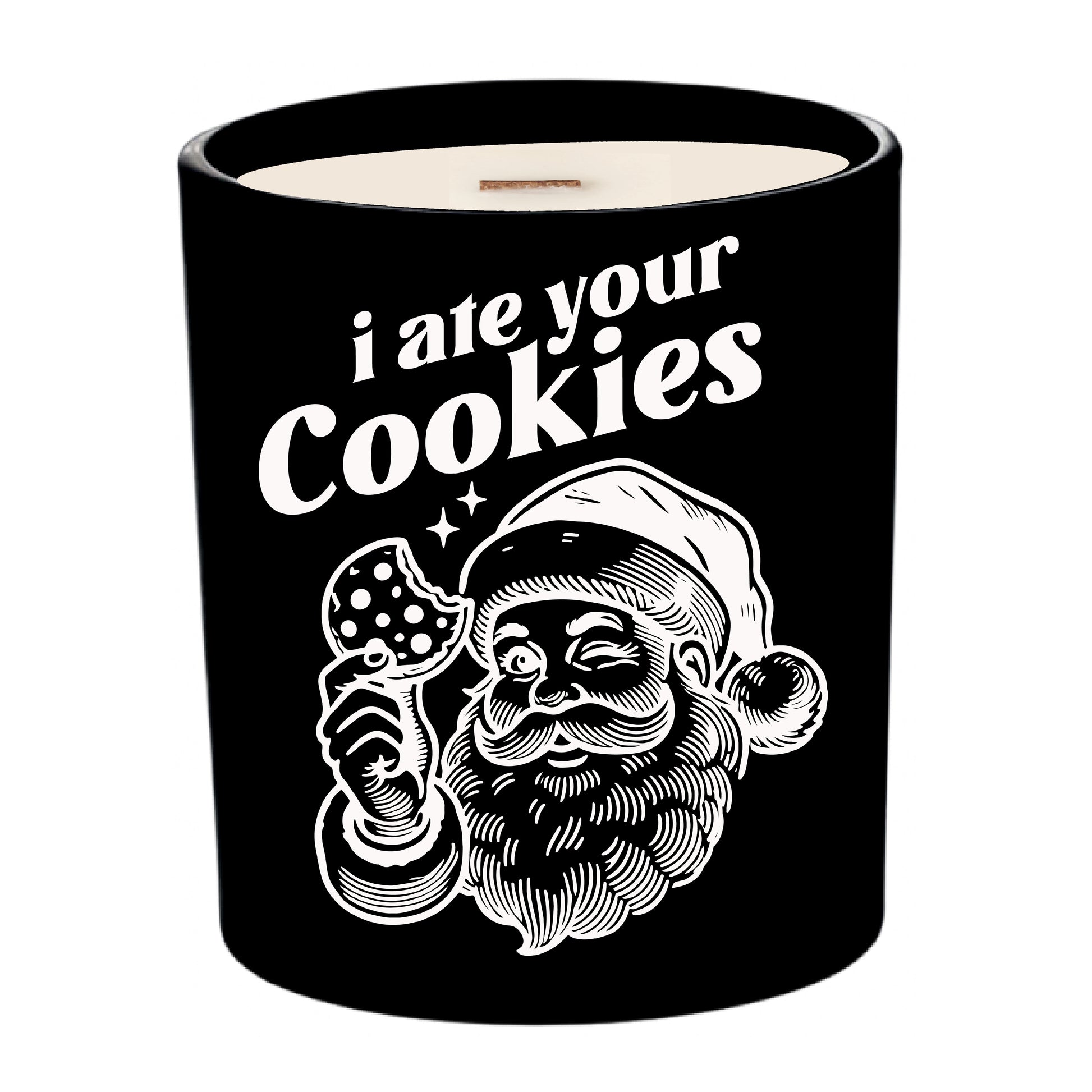 I Ate Your Cookies |Santas Cookies Engraved Soy Candle | Tobacco Caramel + Crackling Wood Wick
