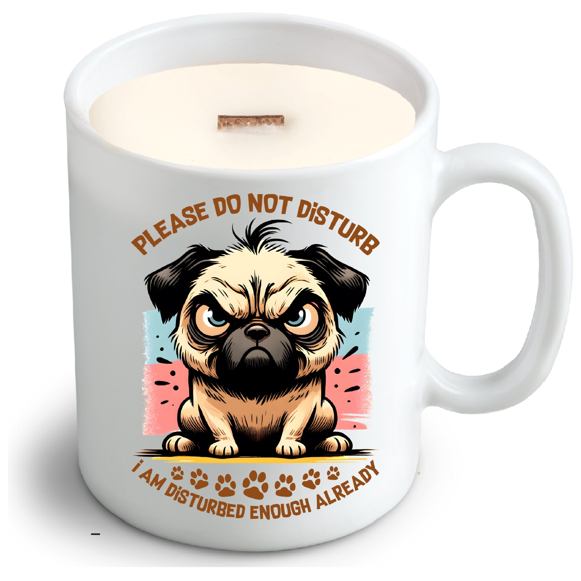 Please Don’t Disturb. I’m Already Disturbed – Funny Soy Candle in Reusable Mug | Tobacco Caramel Scent + Crackling Wood Wick